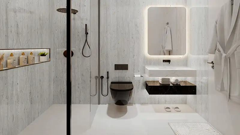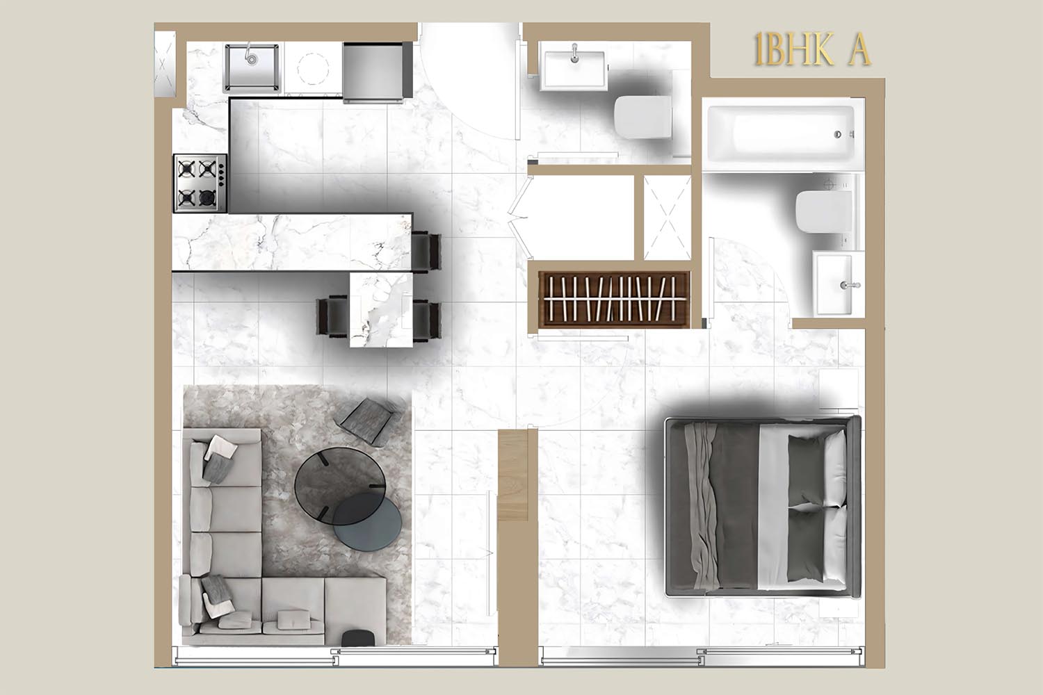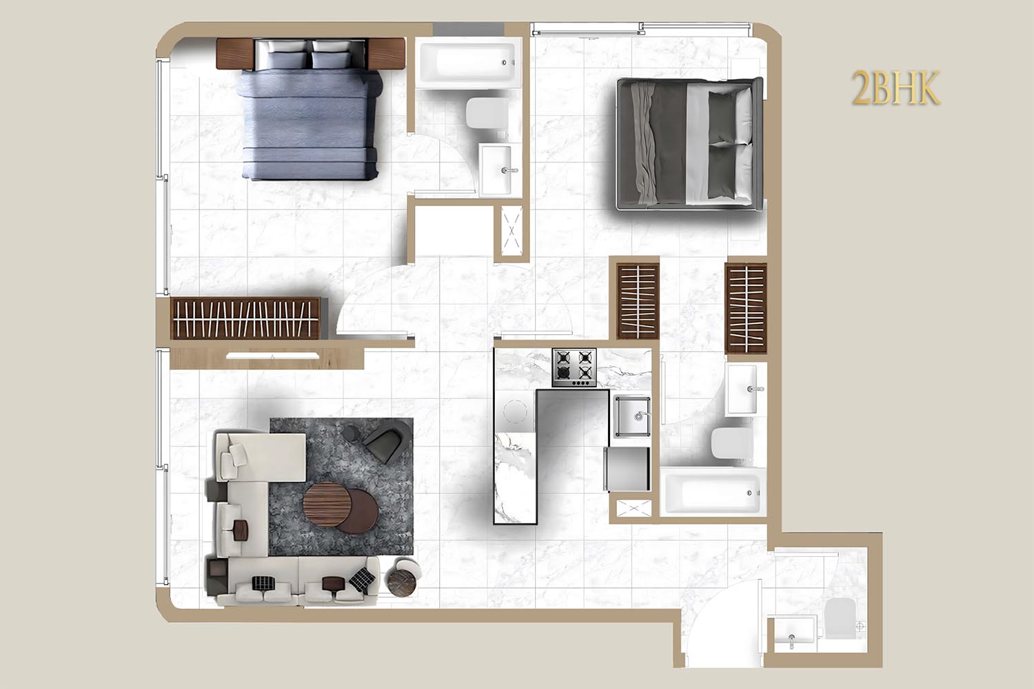 This pristine tower boasts a timeless, elegant, and functional design with an overall captivating visual. The whole identity is defined by a unique style, and the exterior captures precisely crafted detail and purposefully aligned striking transparent glass materials on windows and balcony railings It features a ground, 3 podiums, 13 residential floors, and a rooftop level, where greenery on the spacious balconies, curved & sleek surfaces, and modern lines create an overall inspiring and dynamic living landmark. The beautifully planned podium and the rooftop are the common areas with upscale facilities.